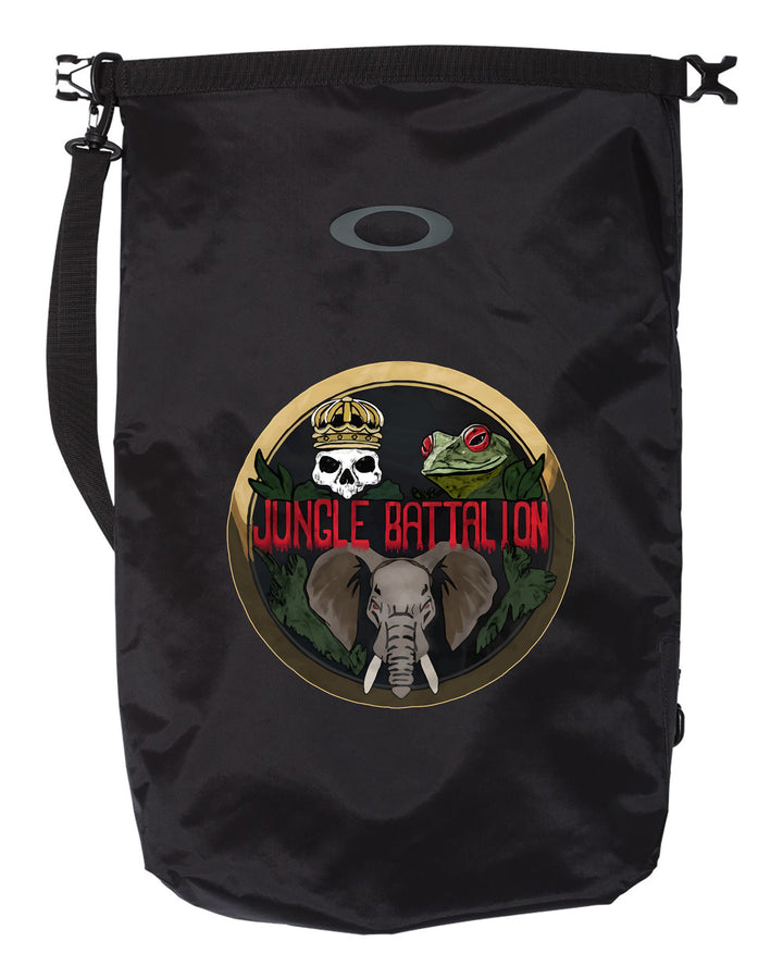 DESCRIPTION: This is a black 15" W x 22", Oakley Dry bag with a shoulder strap. This bag has TPU coating, and is breathable, waterproof and windproof.