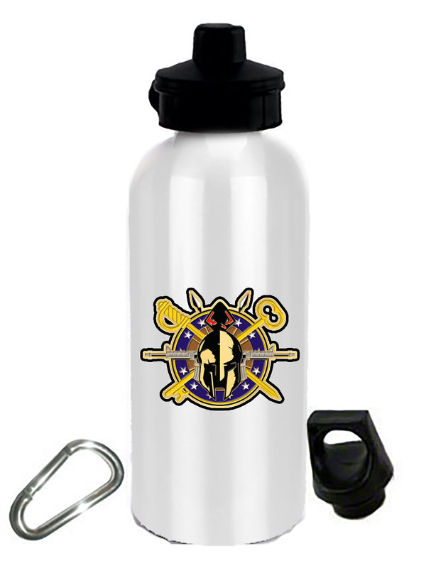 DESCRIPTION: This is a 20oz Stainless Steel White Water Bottle with Stem/Straw Top, and Spare Lid with Split Ring & Carabiner. This water bottle is sublimated with the HHC crest....