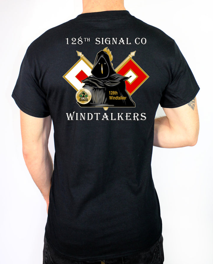 128th Sig Co 50-50 Blend Black Unisex PT Short Sleeve Shirt. Approved for PT