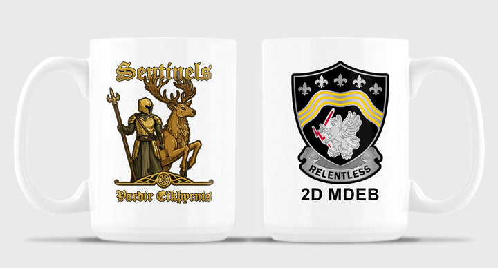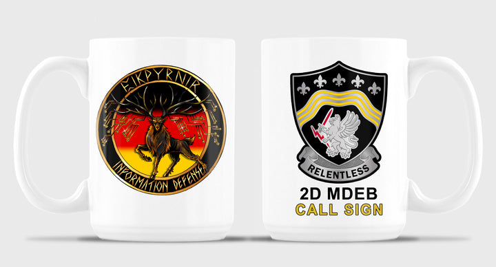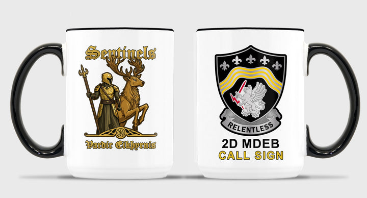 DESCRIPTION: This is a 15oz ceramic coffee mug. Choose between a beautiful all white mug or a white with black trim 15oz coffee mug, with a full wrap around design. One side has the battalion crest. The other side you can choose the brigade back or the company logo of your choice. This coffee mug would make a terrific addition to your coffee mug collection, or as a Christmas gift.