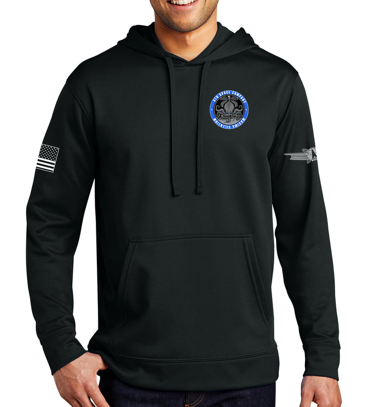 8th Performance Hoodie Black on Black Sweatshirt. (This material is lighter than the 50-50) This sweatshirt is NOT approved for PT.