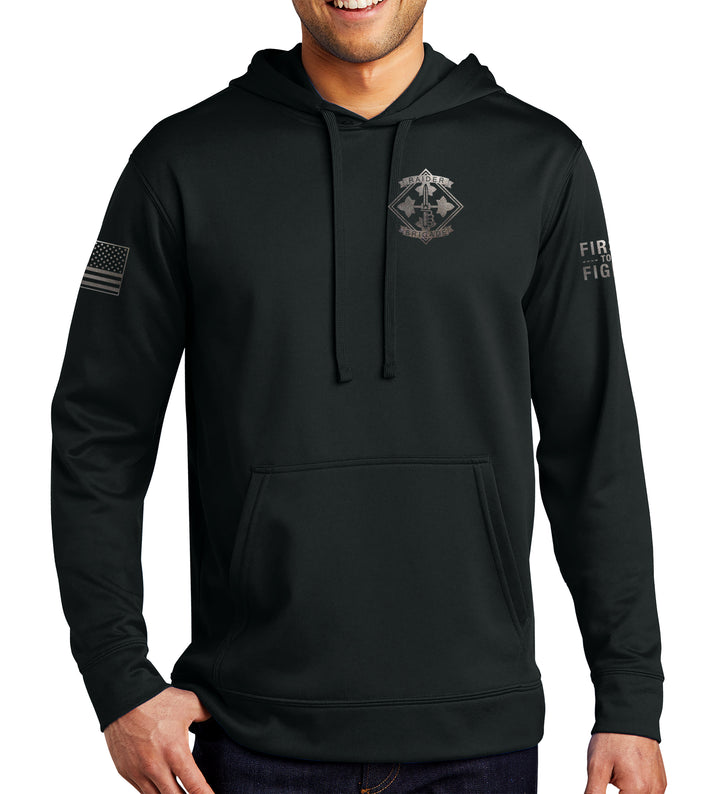 Blk on Blk Performance Hoodie Black on Black Sweatshirt. (This material is lighter than the 50-50) This sweatshirt is NOT approved for PT.