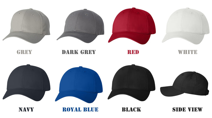 Choose the design you want from the first drop-down and the color of the hat in the second drop-down. These designs are made from vinyl or heat transfers, they are not embroidery.