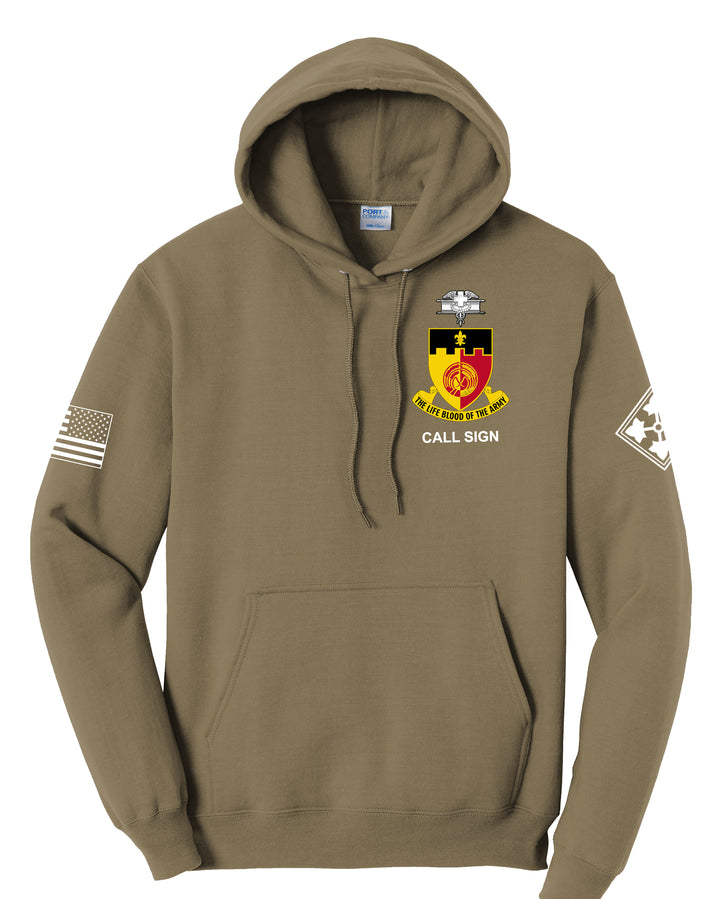 EFMB Badge Tan Hoodie Sweatshirt. This sweatshirt is NOT approved for PT.