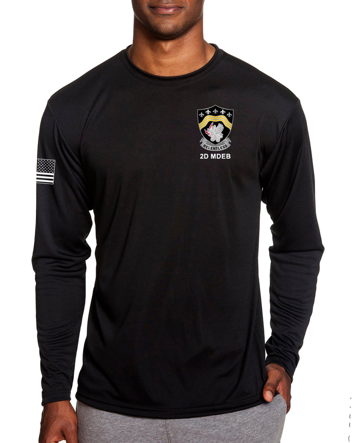 DESCRIPTION: This is a 5.0 oz., 100% polyester long sleeve t-shirt. Moisture-wicking properties, Anti-microbial properties.