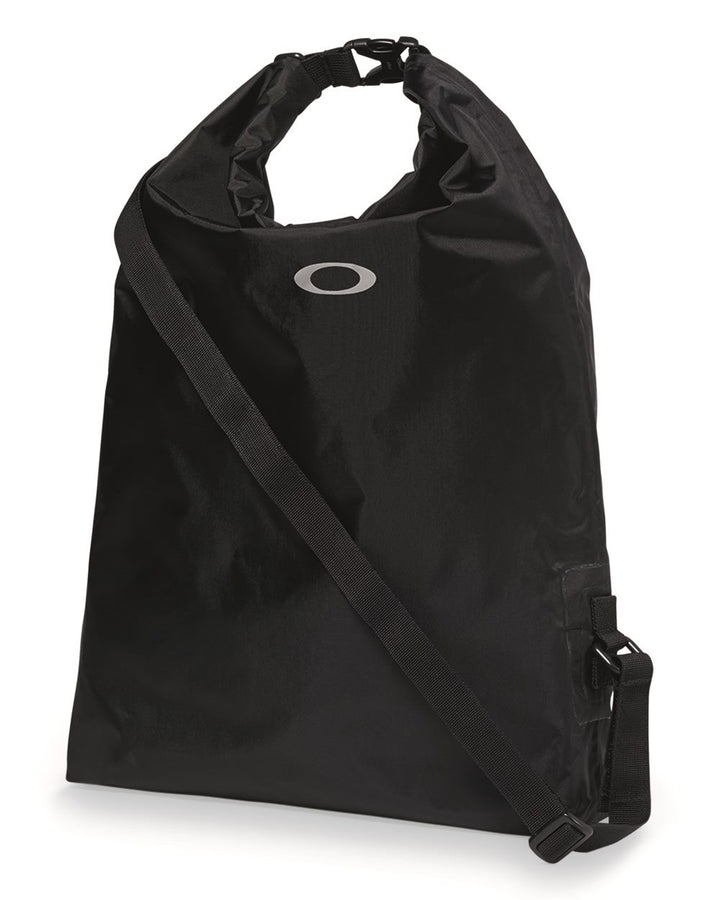 DESCRIPTION: This is a black 15" W x 22", Oakley Dry bag with a shoulder strap. This bag has TPU coating, and is breathable, waterproof and windproof.