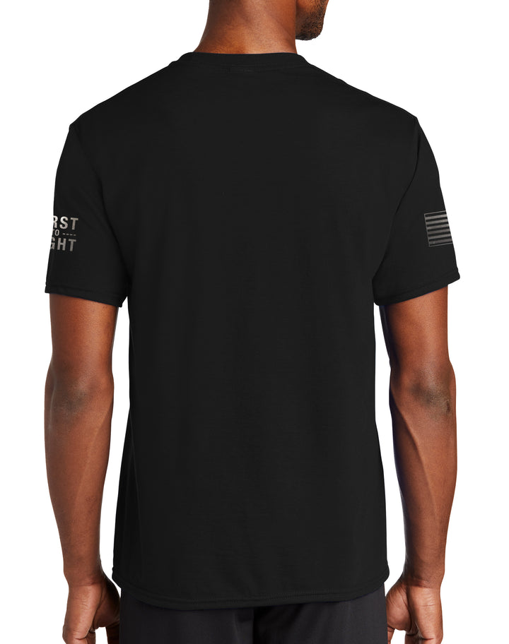 RR Blk on Blk Unisex Performance PT (Feels Like Cotton) Short Sleeve Shirt. This shirt IS approved for PT.